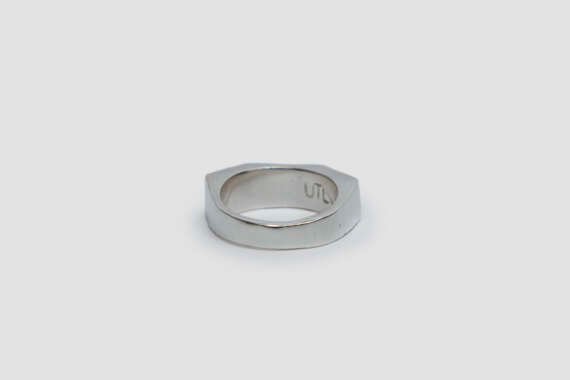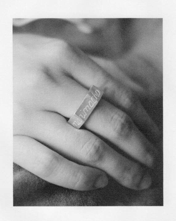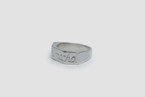 Anillo hecho a mano de plata de ley 925 con texto grabado a mano.